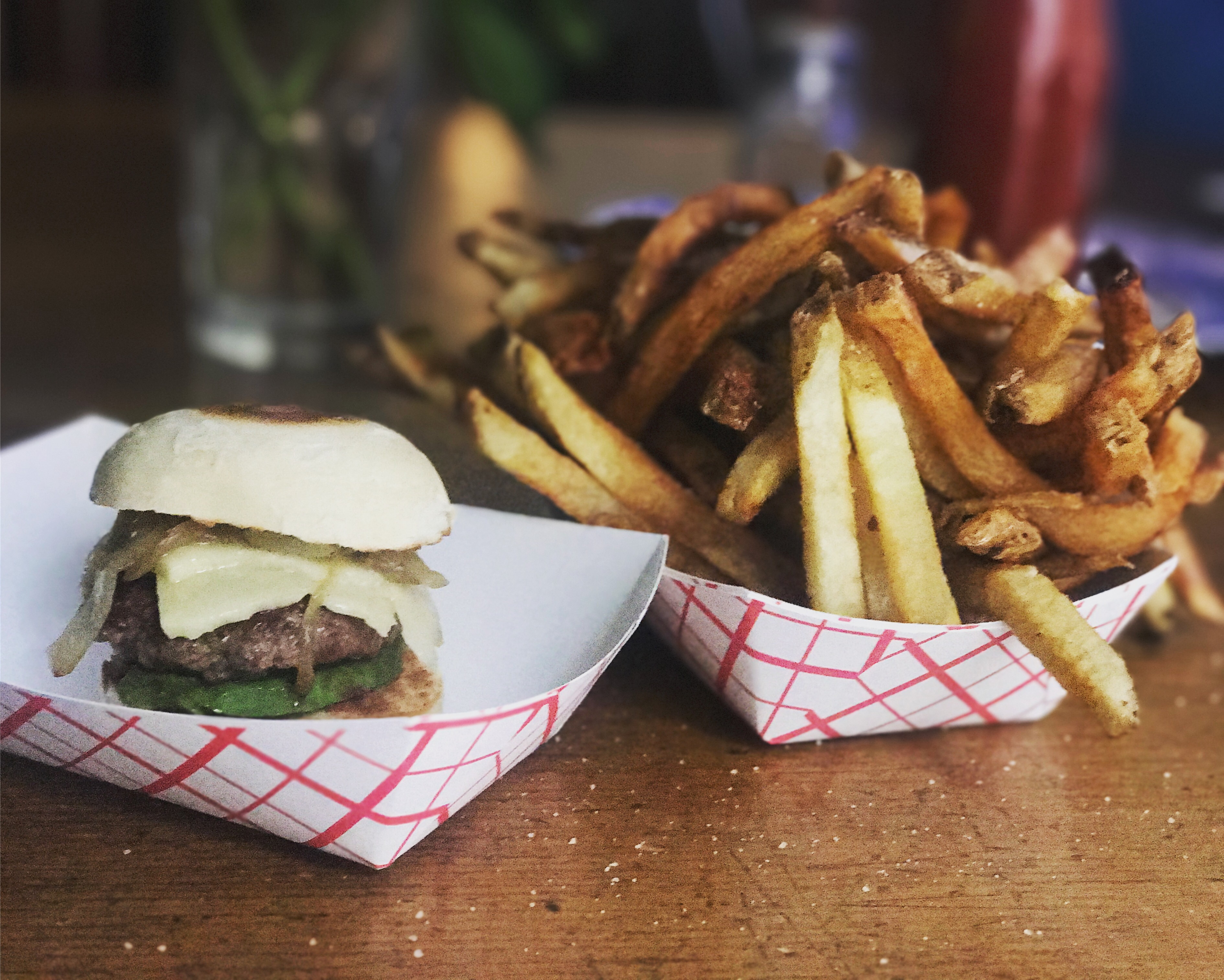 I didn’t even peep the sign until I turned away from the menu already salivating. I HAD to try one. With fries.